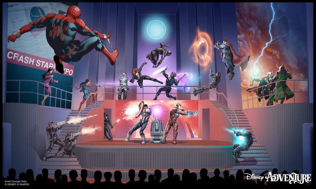 マーベルのヒーローたちが登場するアクション満載のステージショー。
